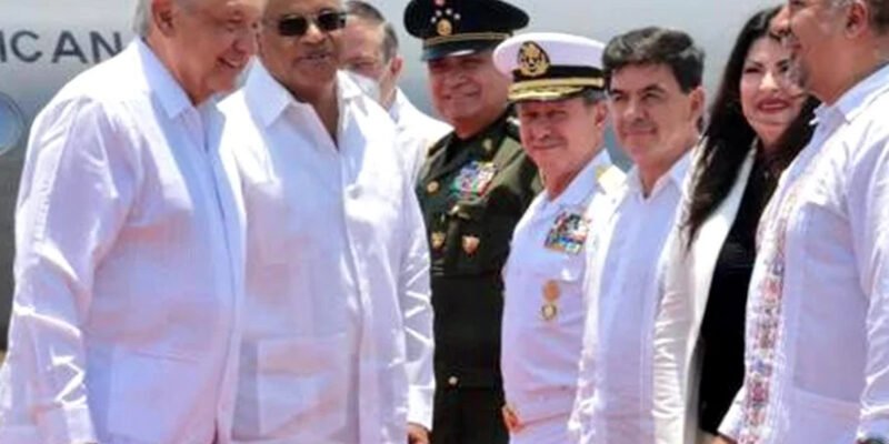 En una aeronave de la Fuerza Aérea Mexicana, el mandatario mexicano arribó a esta terminal, acompañado de Beatriz Gutiérrez Müller, así como los secretarios de Relaciones Exteriores Marcelo Ebrard; de la Defensa Nacional, Luis Cresencio Sandoval, y de Marina, José Rafael Ojeda Durán.