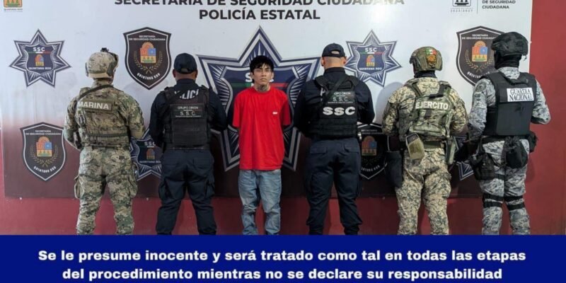 etención de Gabriel Adolfo “N”, presunto implicado en el delito de robo.Elementos del Grupo Orión, de la Secretaría de Seguridad Ciudadana, en coordinación con la Secretaría de Marina, de la Secretaría de la Defensa Nacional y de la Guardia Nacional, atendieron e reporte de un masculino quien estaba alterando el orden público sobre la Avenida Cancun, esquina Avenida Pehaltun, supermanzana 523, manzana 16, lote 101, municipio de Benito Juarez, como referencia afuera de la base de la Policia Estatal.